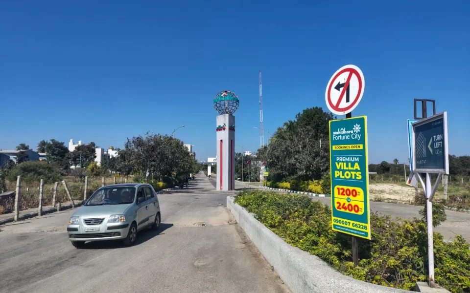 Mahidhara Fortune City is a premium plotted development located in Attibele, South Bangalore, adjacent to National Highway 44. The project spans about 80 to 103 acres with plots sized between 1,200 sq.ft. to 2,400 sq.ft., offering a range of premium villa plots. It is developed by Mahidhara Projects and holds BMRDA approval with RERA ID PRM/KA/RERA/1251/308/PR/111124/007221.